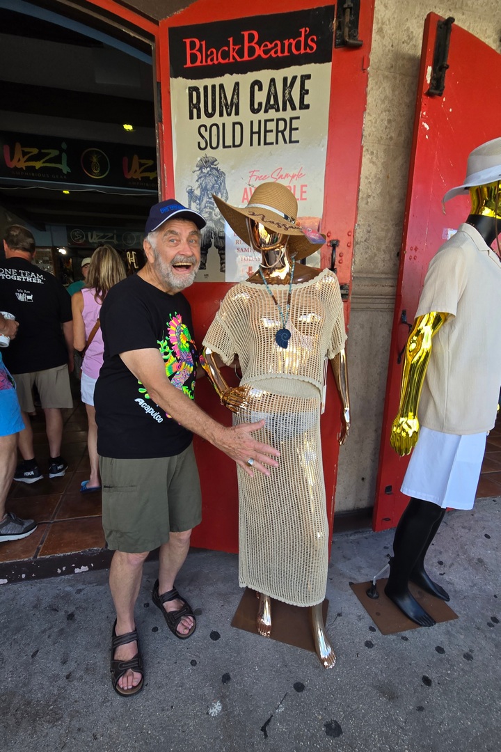 We, accompanied by Regina, walked around town shopping. But 6 ships were in port and everyone had their “gouge the tourists” prices on display. We bought nothing in town. But then Marlene discovered a thrift shop about 2 miles out of town. So we all walked there.