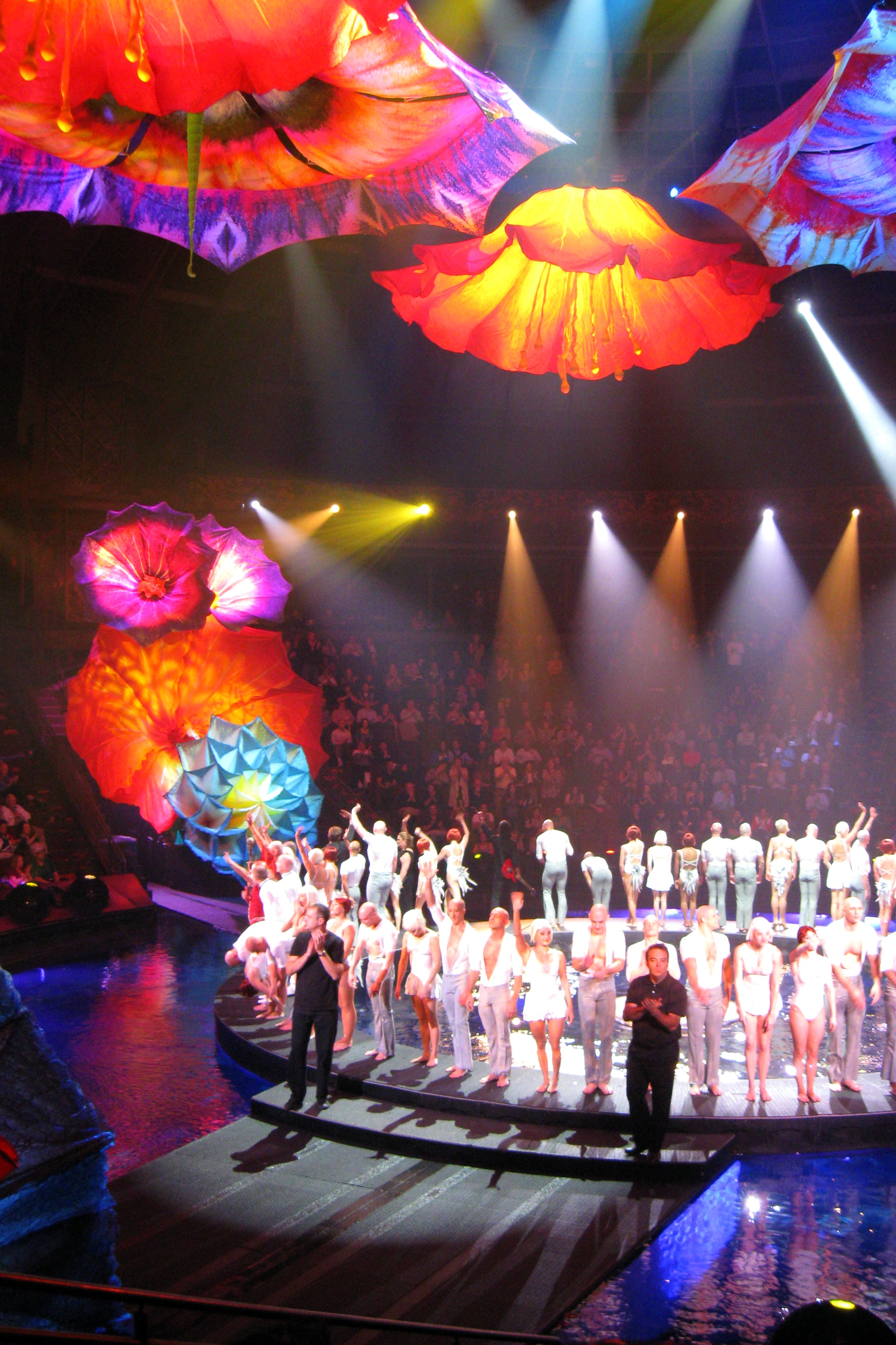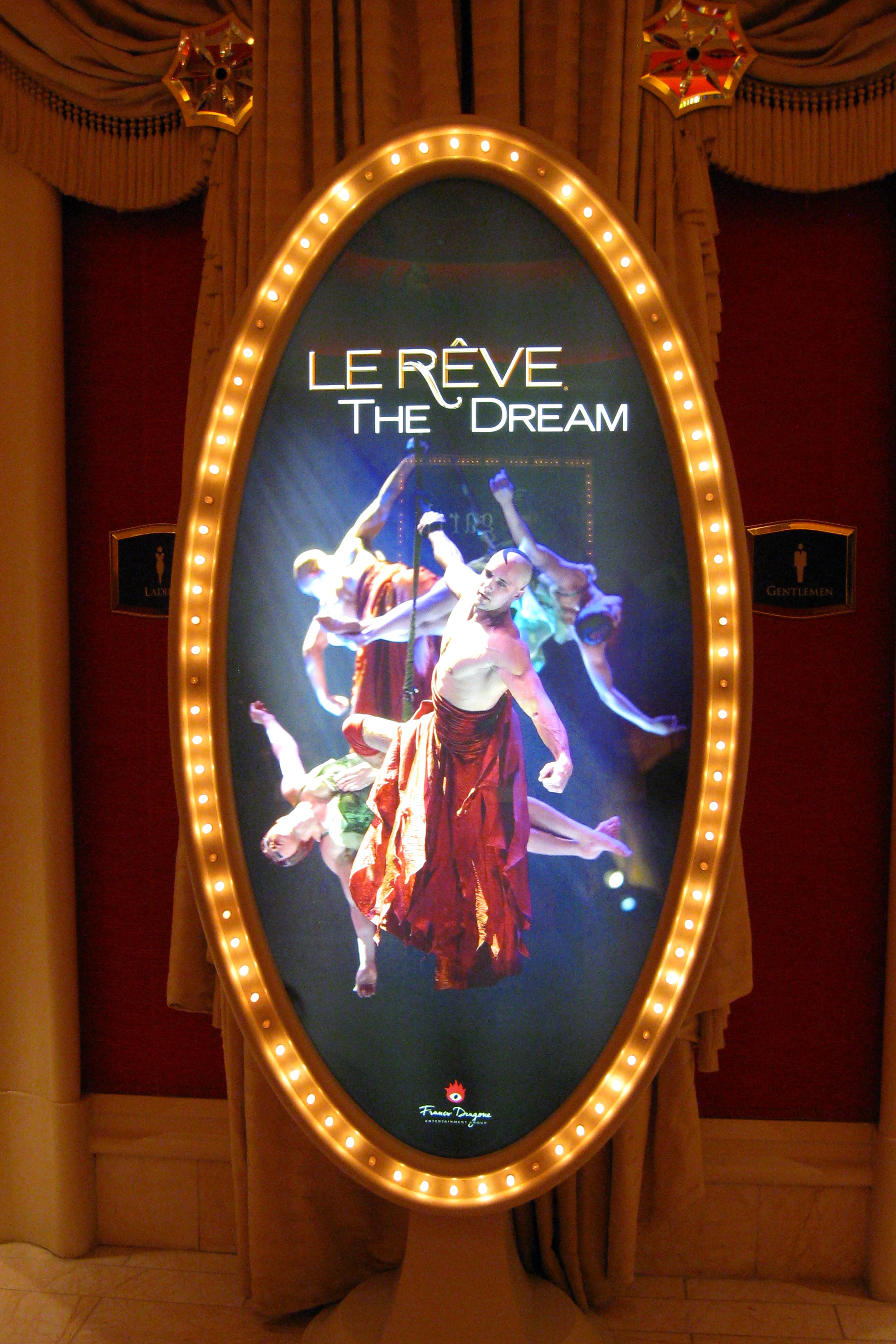 Second, Le Reve. This production reportedly cost over $100 million to produce, which is a lot, but much less than the $220 million production cost of KA. The story line of this show is very simple: a man proposes to a woman who is unsure. She sleeps on it and has a dream in which various other suitors appear to woo her. The suitors include some comic magicians and a few monsters. She eventually wakes and, realizing that her real suitor is better than a magician or a monster, accepts.