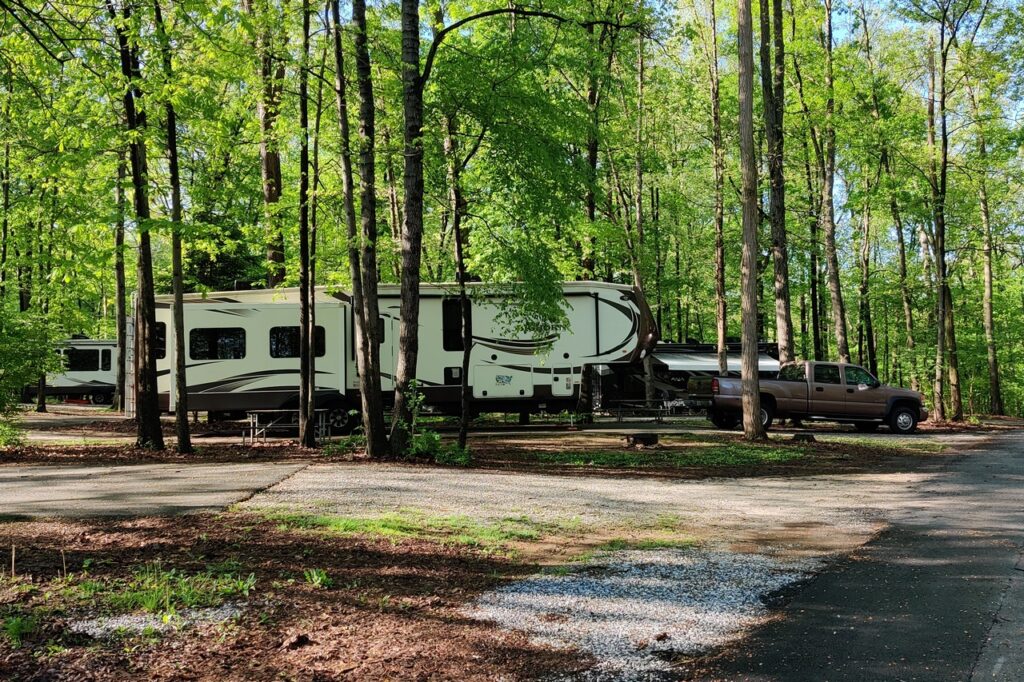 The campground in question is the Rip Van Winkle Campground in Saugerties. Jett and I stayed here for a couple of nights last fall on our way south. I didn’t like it much then and I am still not a huge fan. I got the same site – #77, a huge pull-through – and that was nice. But the roads are narrow with sharp turns and steep hills. And the staff is not particularly helpful. I arrived at 1:30pm, which is usually late enough to check in. But I was informed that check-in time was 3pm and I should leave and return in 90 minutes. She didn’t even bother to see if the site was available. I had to execute a very tight U-turn (did I mention that the roads are very narrow?), missing the back end of a parked pickup by about 2 inches. I went a half-mile down the road and parked in a closed business parking lot (it was Sunday) and used the time to check emails and news. I had to execute another tight turnaround there – one that left some rubber from the RV’s tires on the asphalt.