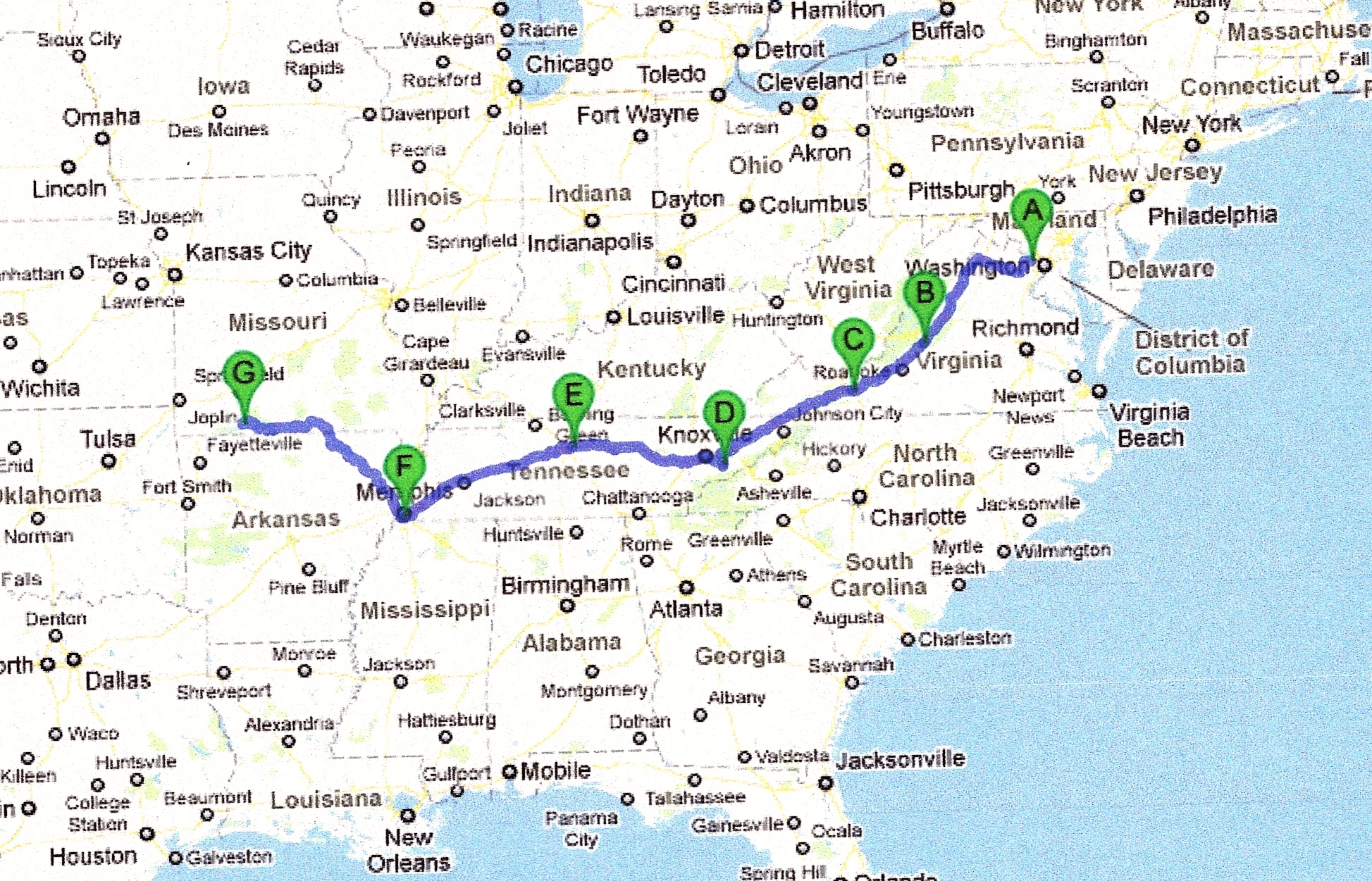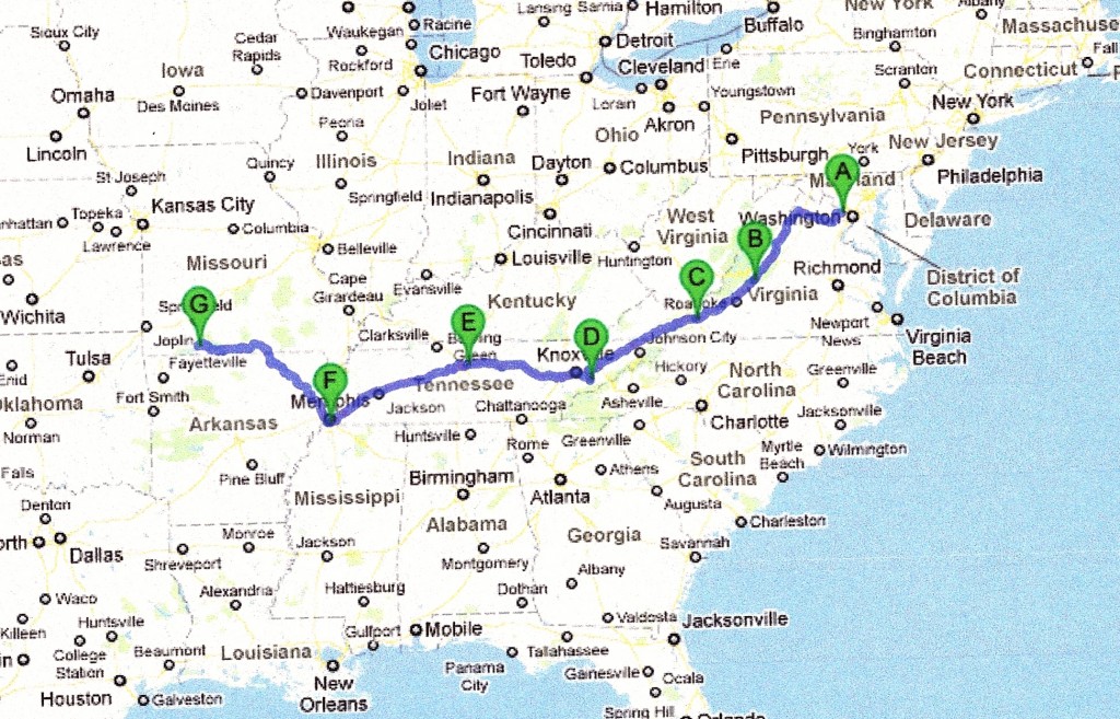 Speaking of Las Vegas, that is the destination of Segment 3 which will be a long, dusty trek though Arkansas, Texas, New Mexico, Arizona and Nevada.